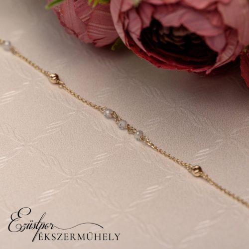 Sárga arany karkötő, csiszolt gömbökkel és cirkónia gömbökkel. Hossza: 17+2 cm hosszabító.