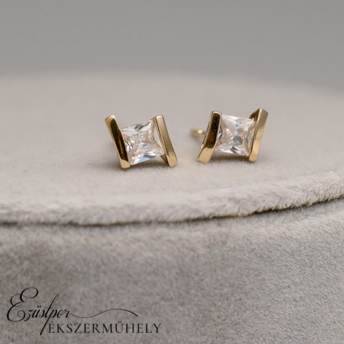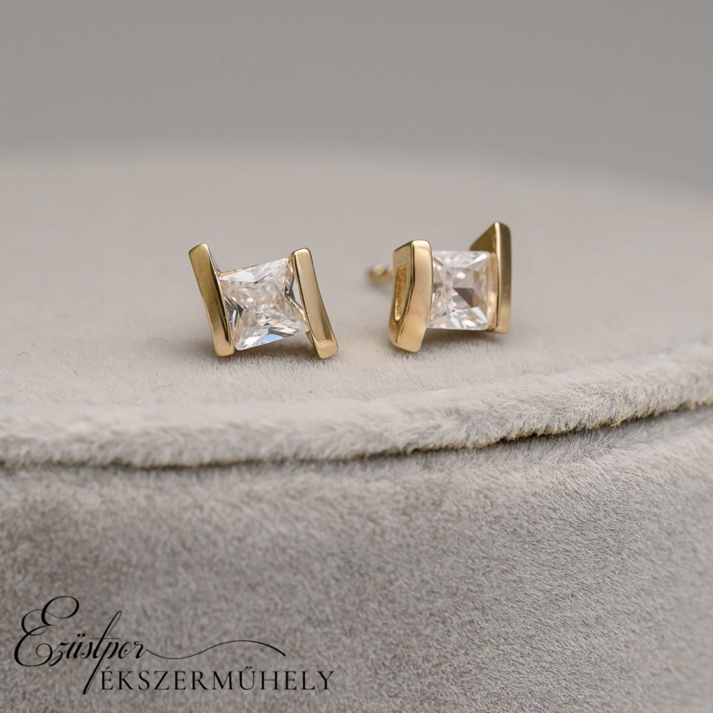 Sárga arany, cirkónia köves, bedugós fazonú fülbevaló.