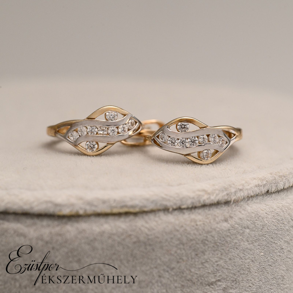 Sárga és fehérarany cirkónia köves francia kapcsos fülbevaló.