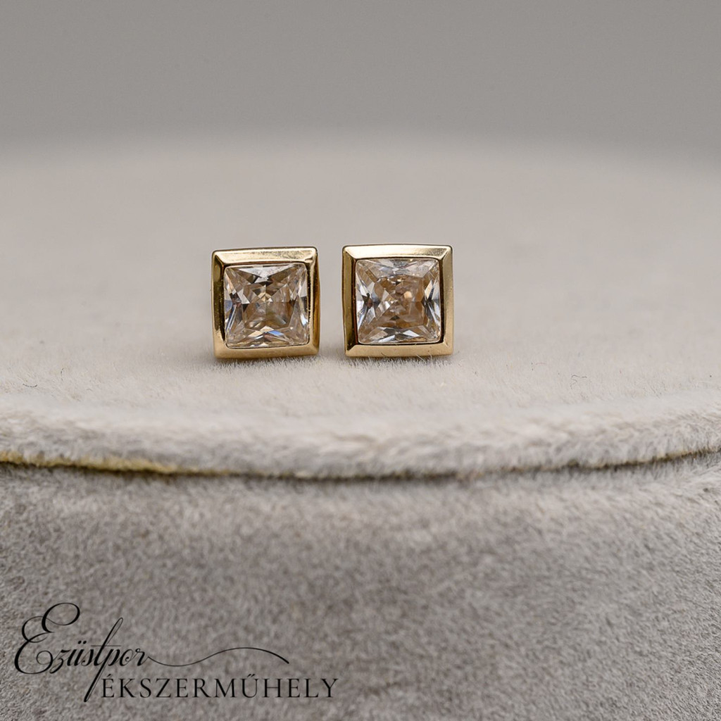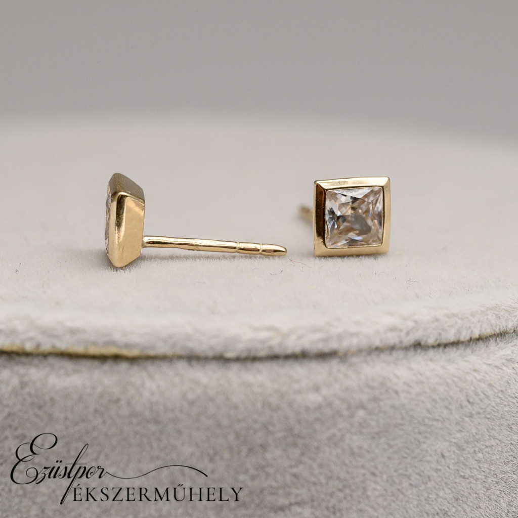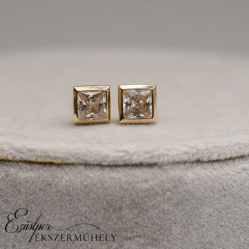 Sárga arany fülbevaló, cirkónia kővel, bedugós kivitelben.