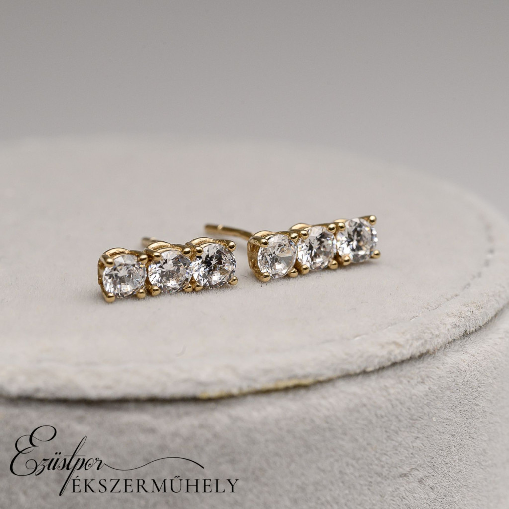 Sárga arany, cirkónia köves fülbevaló, bedugós kivitelben.