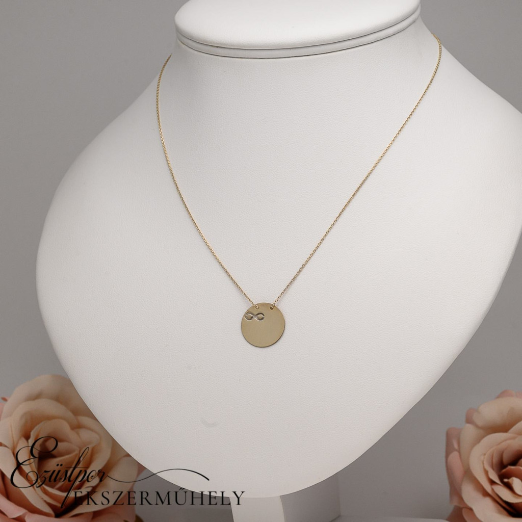 Sárga arany, végtelen jeles, gravírozható lapmedálos nyaklánc, hossza: 40 cm.