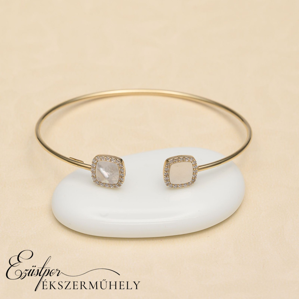 Sárga arany, kagylós és cirkónia köves karkötő.