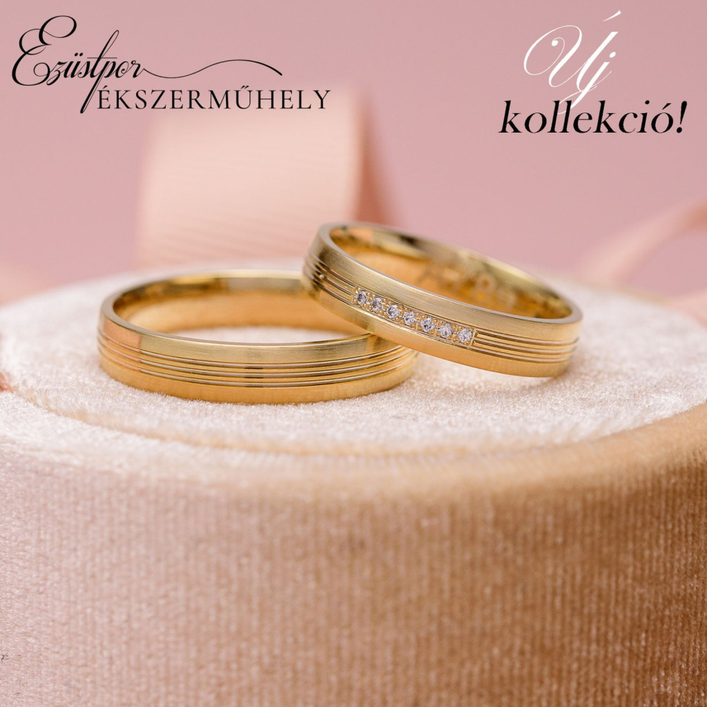 - Egy- és többszínű, köves és kő nélküli, valamint többféle felületkezelésű (pl.:selyemmatt, jégmatt, gyémántvésett, különleges mart felületű, vagy tükörfényes) karikagyűrűket is készítünk a legváltozatosabb igény szerint. Ezek variációs lehetőségei szinte végtelenek, de a véglegesítés előtt egyeztetni érdemes.
