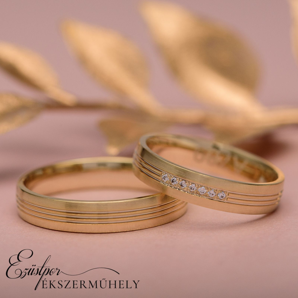 - A képen szereplő pár 585-ös finomságú, 14 karátos aranyból készült. Súlya kb. 7,50 gr, de ez a megrendelt méretektől függően változhat. 4 mm széles.