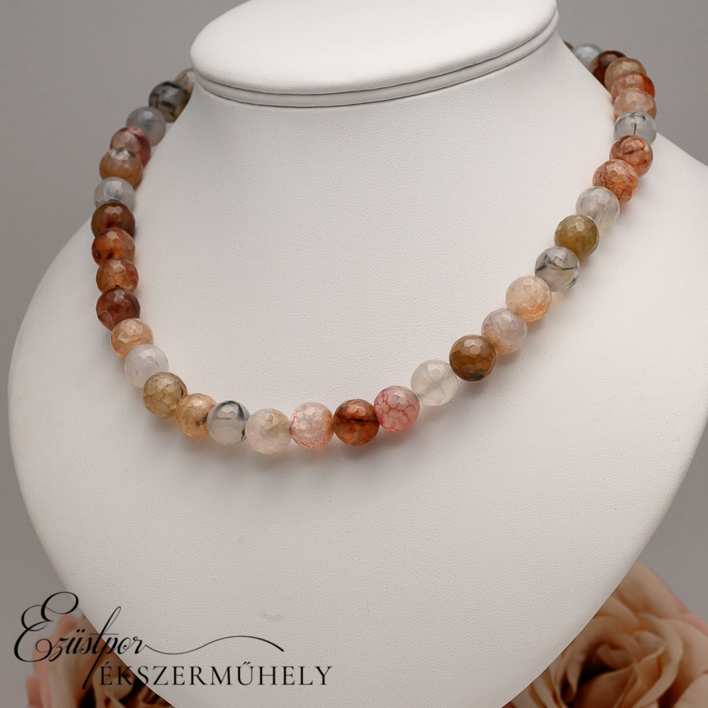 Achát nyaklánc, ezüst kapcsolóval.