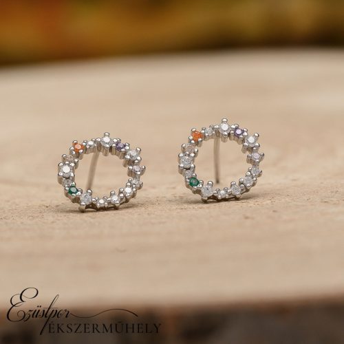 Ezüst, cirkónia köves, bedugós fülbevaló.