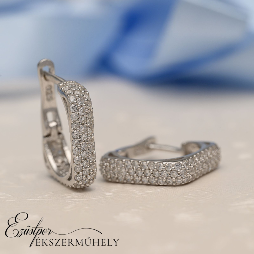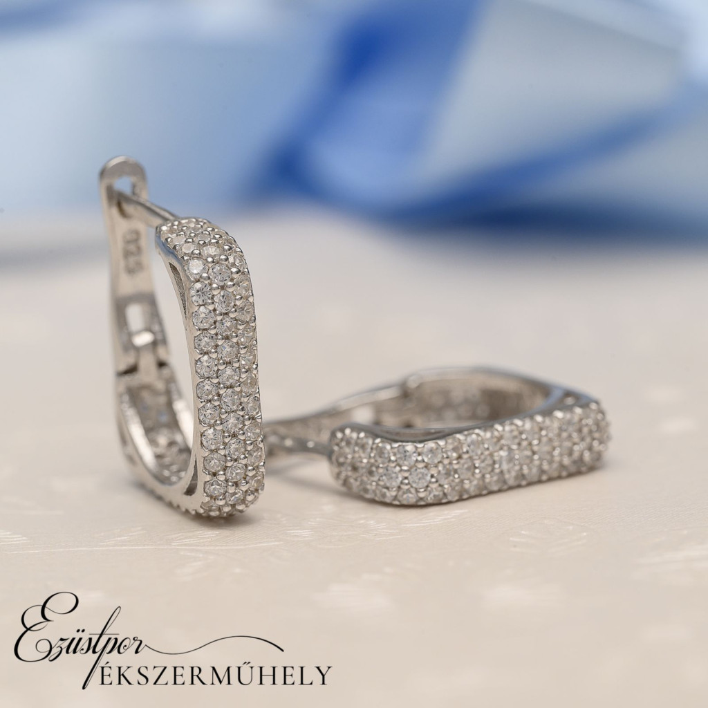Ezüst, cirkónia köves, karika jellegű fülbevaló.