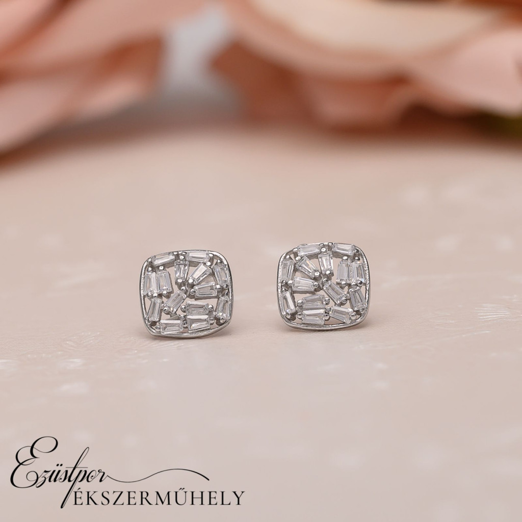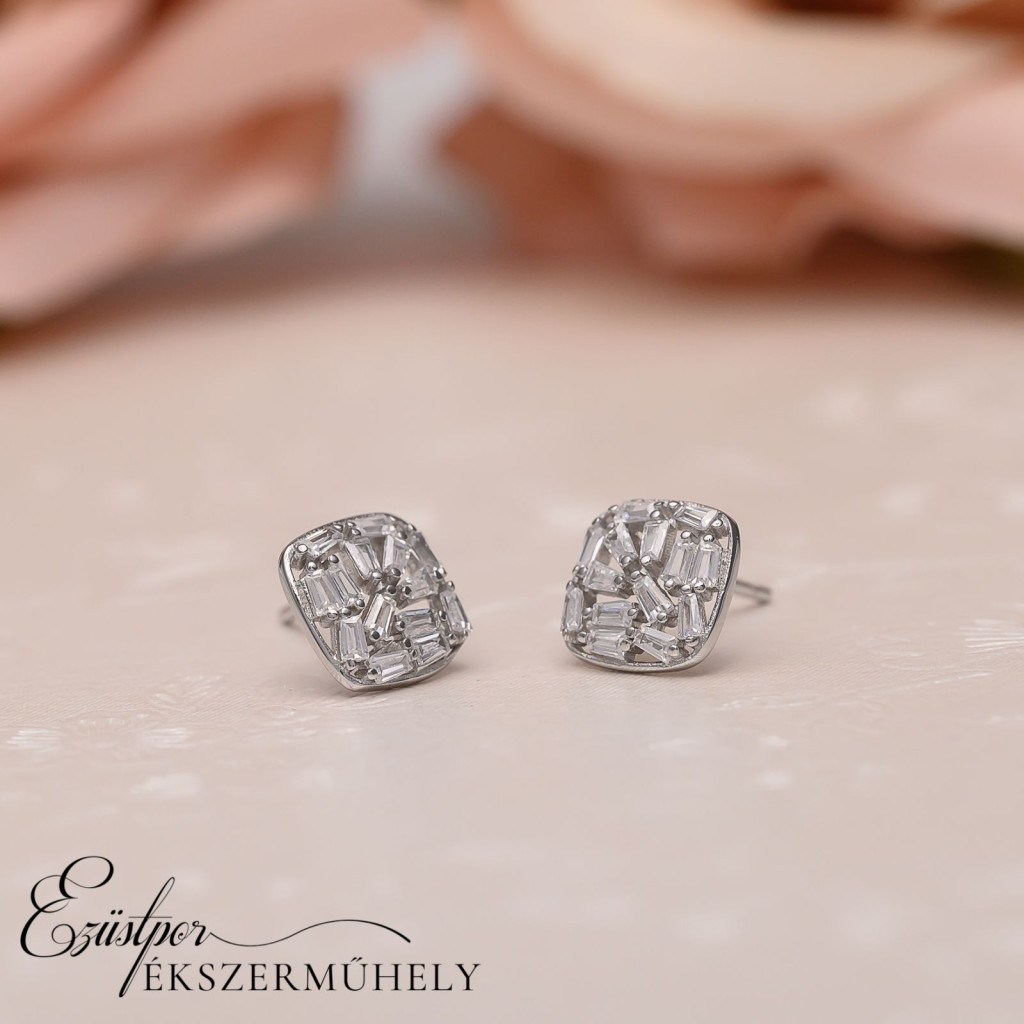 Ezüst, cirkónia köves, bedugós fülbevaló.