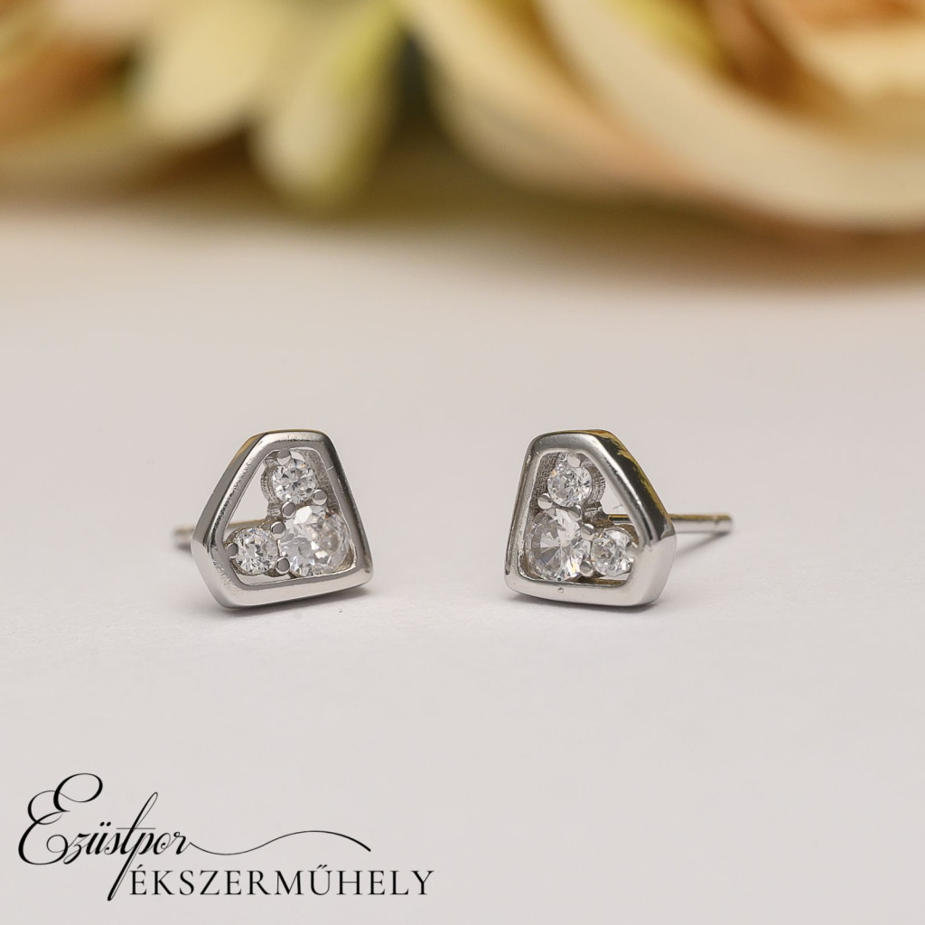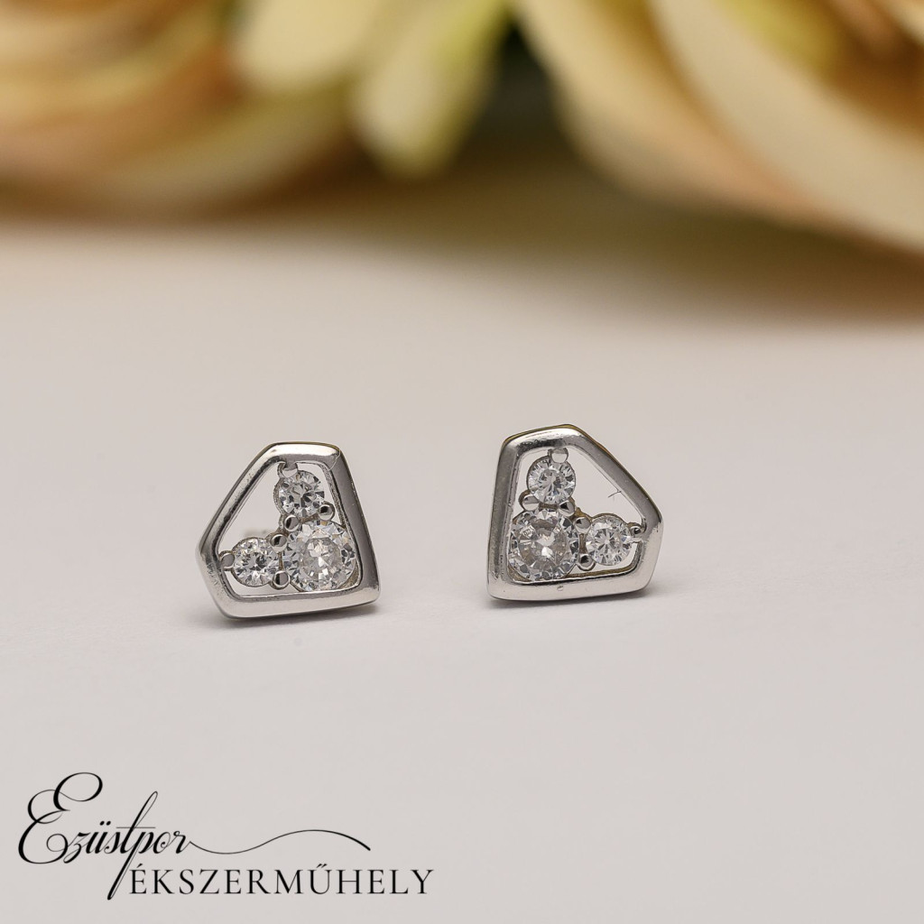 Ezüst cirkónia köves, bedugós fülbevaló.
