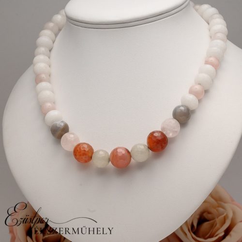 Füstkvarc és hovlit nyaklánc, ezüst kapcsolóval.