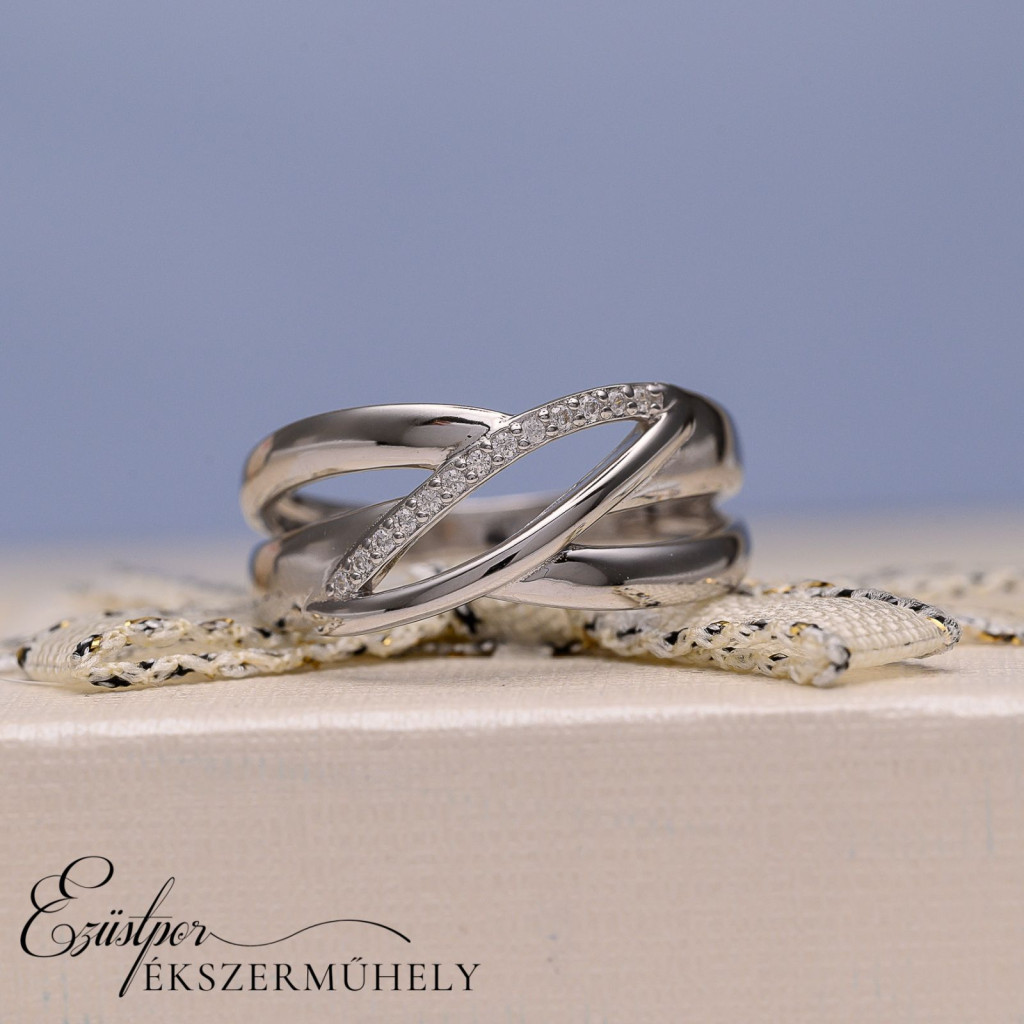 Ezüst cirkónia köves gyűrű, 62-es méretben.