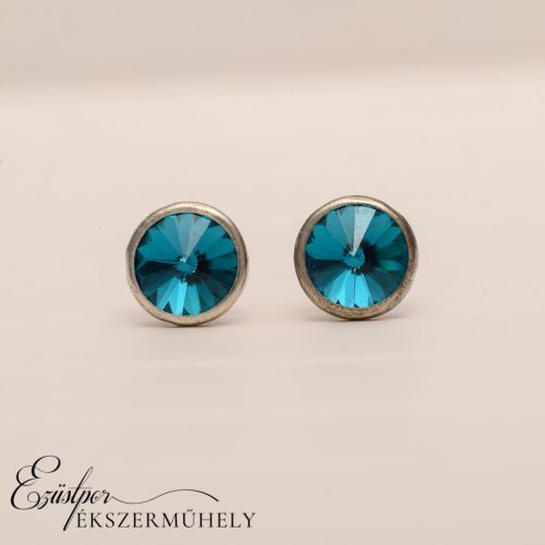 Zöld köves ezüst swarovski, kerek formájú fülbevaló, bedugós kivitelben.